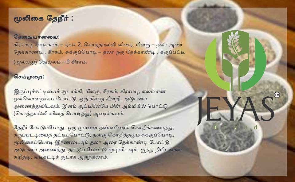 Dried Ginger powder – both 1 teaspoon, Jeyas Jaggery (and more) sugar - 5 g.